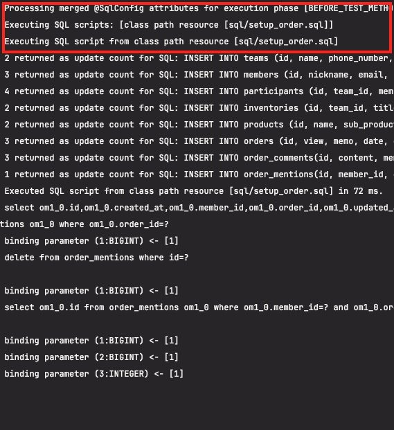@Sql(scripts = "classpath:sql/setup_order.sql", executionPhase = Sql.ExecutionPhase.BEFORE_TEST_METHOD)