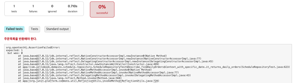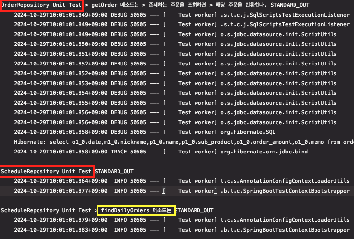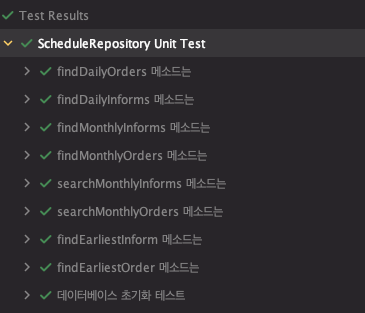- 이후에 수행되는 ScheduleRepository 테스트에서 첫 번째 테스트가 findDailyOrders 메서드 테스트다.