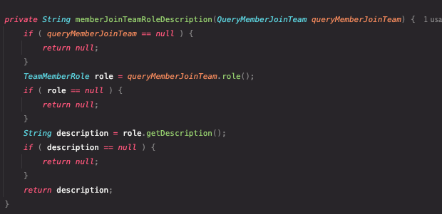 아래 예시는 Service 레이어에서 사용자 프로필을 반환할 때 사용자가 위치한 팀 정보를 같이 반환하라는 요구사항에 의해 작성된 것이다. 반복문을 돌리며 mapper 를 각각 호출해 매핑 후 다시 mapper 를 호출해 결과를 반환하는걸 확인할 수 있다.