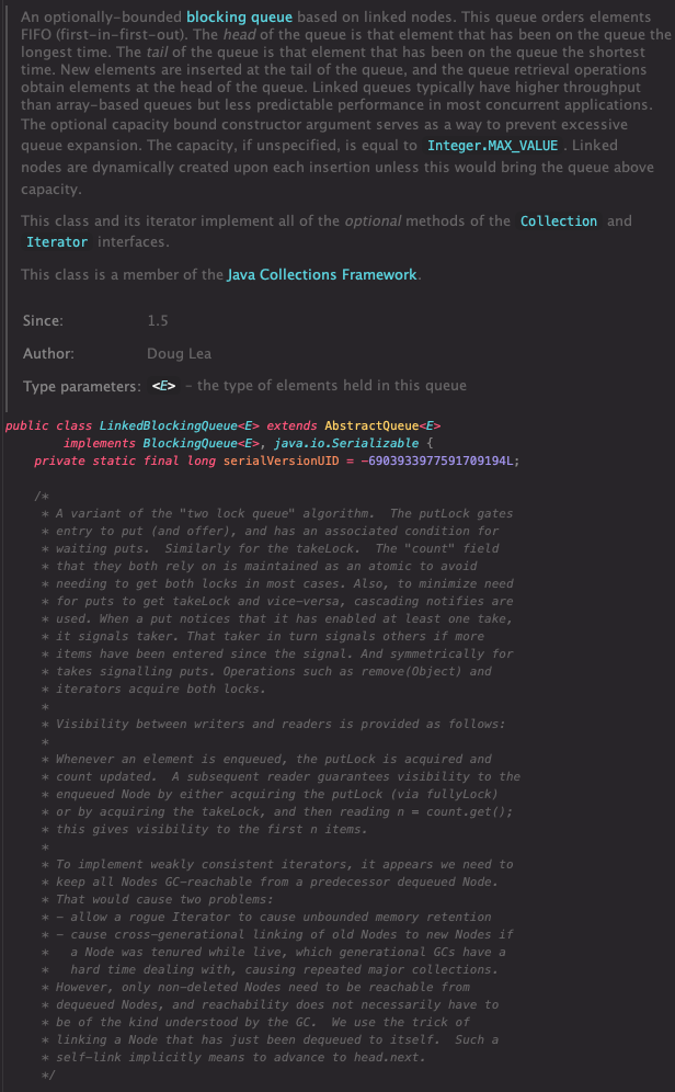 - 크기 제한이 없는 BlockingQueue의 경우 Integer.MAX_VALUE를 반환할 수 있다.