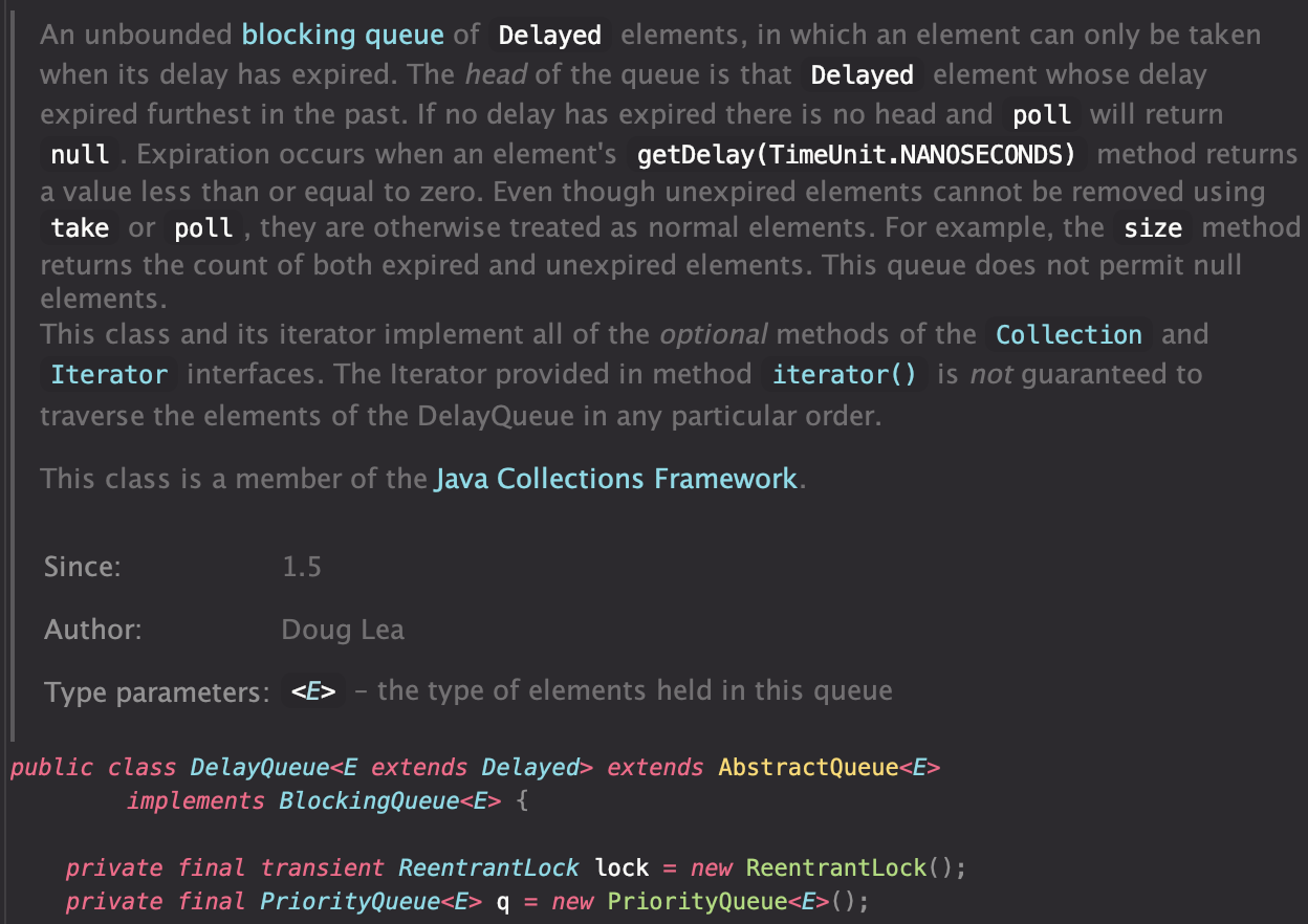 DelayQueue<DelayedTask> queue = new DelayQueue<>();