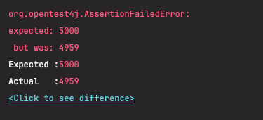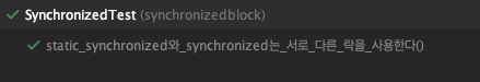 테스트가 실패한다. 여기에 synchronized 키워드를 붙이고 실행하면 테스트가 성공하는 것을 확인할 수 있다.