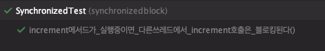 첫번째 테스트에서, 다른쓰레드에서 호출한 increment()는 블로킹되어, 2초가 흐른 시점에서 blocked 변수는 변하지 않음을 확인했다.