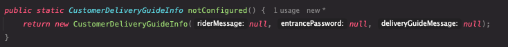 정적팩토리 메서드를 이용해 "아직 설정되지 않은 배달 안내정보"라는 의미로 객체를 생성해서 반환하고