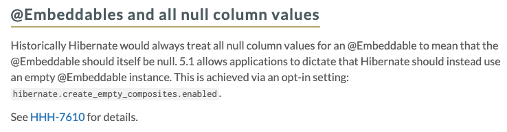 확인해보니, @Embeddables 로 설정한 객체는 모든 필드가 null 일 경우 null 로 매핑된다. (아래 문서 참조) 따라서 위의 CustomerDeliveryInfoGuide 가 null 이 되었고, 응답 객체 매핑에서 NPE 가 발생한 것이다.