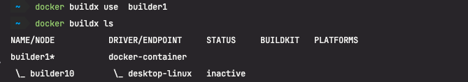 docker buildx ls 로 빌더를 확인할 수 있다.